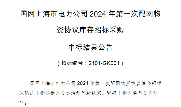 新年伊始喜报不断,河南益达注册凭借卓越的产品质量、强大的技术实力以及良好的企业信誉,获得国网上海市电力公司2024年第-次配网物资协议库存招标项目中标资格,中标0924AA-1404002-0001低压电力电缆包 26,金额为4047.73787万元。