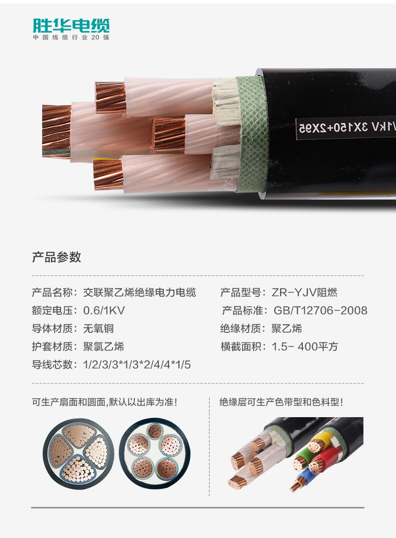 益达注册ZR-YJV-0.6/1KV阻燃低压交联铜电力电缆